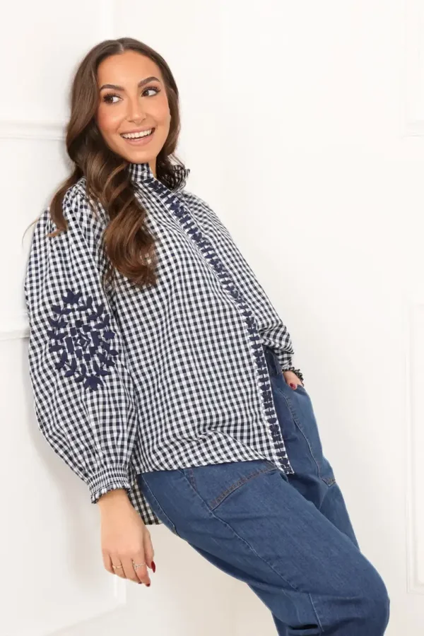 Chemise DANNA - Carreaux intemporels & broderies délicates (TU)